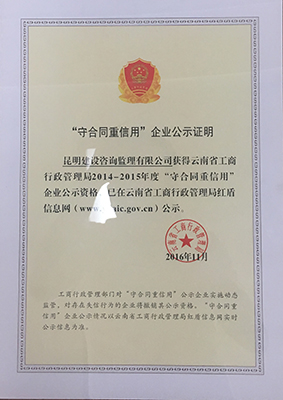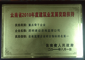 千亿(中国)从2009年至今连续荣获“云南省年度建筑业发展奖励扶持”全省监理企业排名第一企业;连续多年荣获“纳税突出贡献企业”称号;连续十七个年度被评为昆明市“守合同重信用”监理企业,连续八个年度被评为云南省“守合同重信用”监理企业。