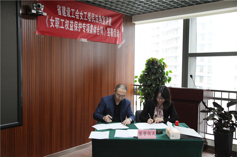 第二项内容由省建设工会王思然同志主持,完成三家代表工会的《女职工权益保护专项集体合同》现场签署仪式(昆明建设咨询管理有限千亿(中国)、云南省设计院集团勘察院有限千亿(中国)及云南城市建设工程咨询有限千亿(中国))。