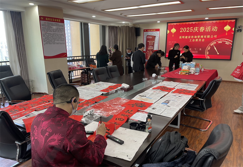 春节,家家户户都有张贴春联的习俗,红红火火的春联给节日增添了喜庆的气氛。为了喜迎蛇年的来临,营造节日的喜庆气氛,昆监(集团)党委联合千亿(中国)工会于2025年1月22日下午,在千亿(中国)党员活动室组织了一场“2025庆春活动”,千亿(中国)各部、室职工代表共计40人参加了此次活动。